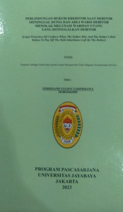 Perlidungan Hukum Kreditur Saat Debitur Meninggal Dunia Dan Ahli Waris Debitu…