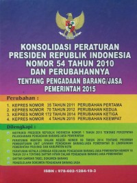 Konsolidasi Peraturan Presiden Republik Indonesia Nomor 54 Tahun 2010 dan Perubahannya tentang Pengadaan Barang/Jasa Pemerintah 2015