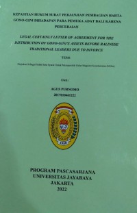 Kepastian Hukum Surat Perjanjian Pembagian Harta Gono-Gini Dihadapan Para Pemuka Adat Bali Karena Perceraian
